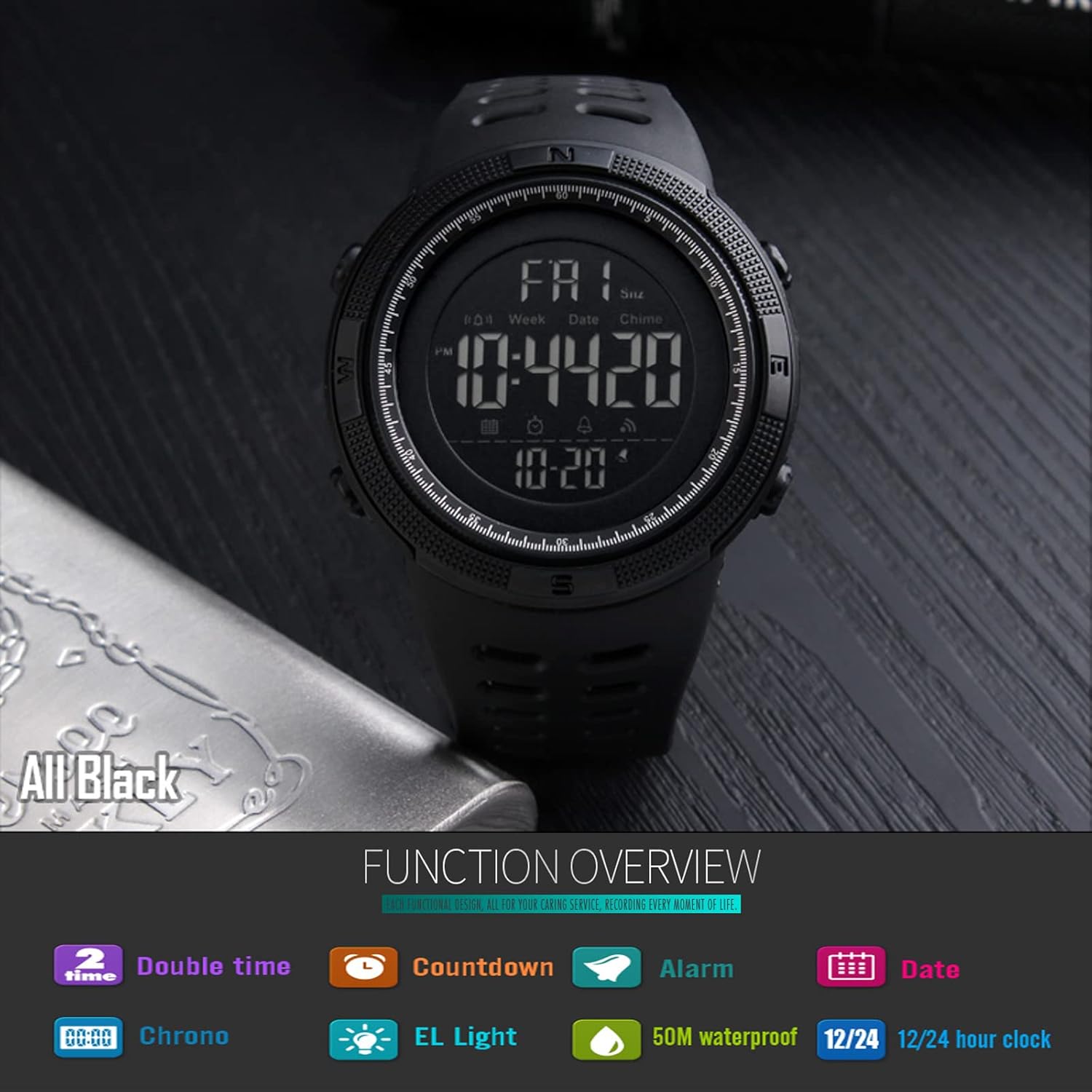 Potencia tu día con un reloj diseñado para rendimiento, resistencia y estilo. El Digital Black Edition combina una estética minimalista con una funcionalidad total, convirtiéndose en tu compañero ideal para el entrenamiento, el trabajo o la aventura.